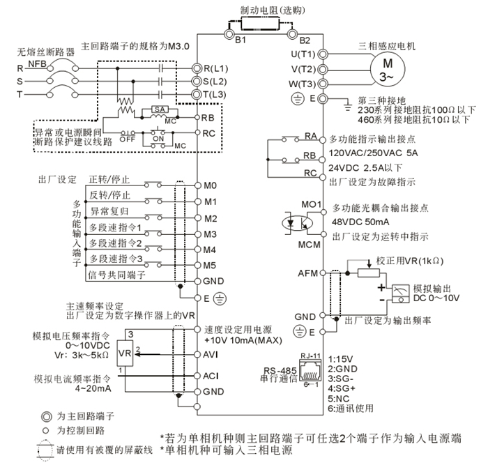 6、提供多種速度控制接口4-20Ma、0-10V、外部8段速控制、標(biāo)準(zhǔn)MODBUS 485通訊。