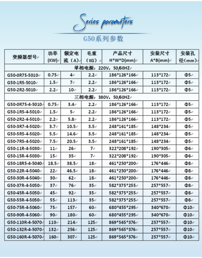 8.提供多達50種的故障保護功能。能在各種異常使用情況下,快速可靠的自動停止輸出,從而保護電機或變頻器自身過電流可能導致的損壞。